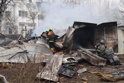 Servicios de emergencia ucranianos supervisan el escenario de un ataque ruso en…