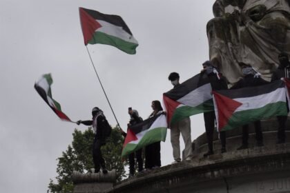 Diputados de izquierda visten colores de bandera palestina en Parlamento francés.