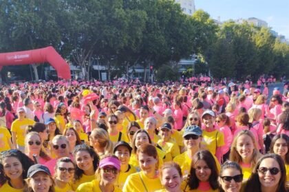 Mujeres judías participan en la Carrera de la Mujer en Madrid en solidaridad con las secuestradas por Hamás en Gaza.