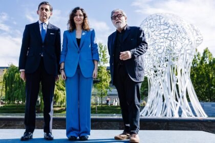 La obra escultórica Iris de Jaume Plensa llega al Distrito Telefónica para celebrar el centenario de la compañía.