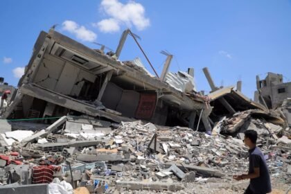 Edificio destruido por un bombardeo del Ejército de Israel contra la ciudad…