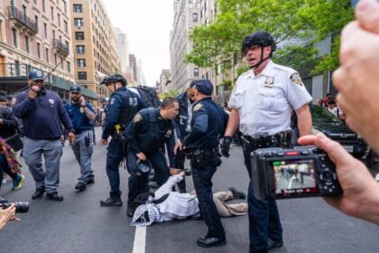 La Policía de Nueva York arresta a tres individuos por atropellar a un manifestante pro-palestino.