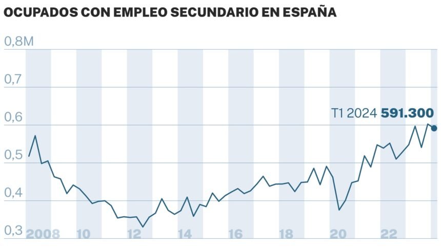 El pluriempleo aumenta significativamente en cinco años, alcanzando un récord de 600.000 trabajadores, lo que representa un incremento del 57%.