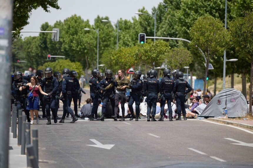 Agentes de la Policía Nacional tuvieron que intervenir en la Universidad Complutense de Madrid ante la presencia de aproximadamente 150 personas de la acampada por Palestina que invadieron la Avenida de la Complutense y realizaron una sentada cerca del Metro de Moncloa.