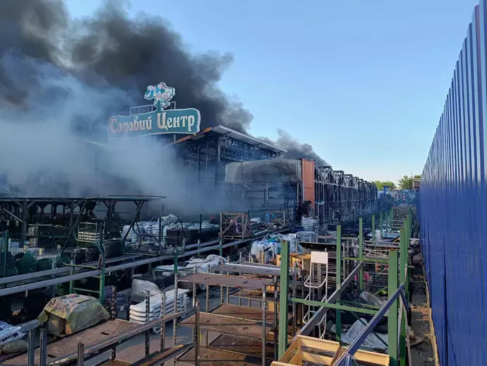Según el gobernador regional de Járkov, Oleg Sinegubov, al menos dos proyectiles han explotado en el hipermercado Epicentr, especializado en construcción. El edificio, que abarca 15.000 metros cuadrados, está ahora mismo en llamas después del ataque, que ha ocurrido en torno a las 16.00, hora local (las 15.00 en España)
