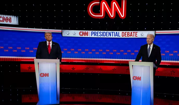 27 June 2024, US, Atlanta: US President Joe Biden and former US President Donald Trump participate in the first 2024 presidential election debate at CNN Atlanta studios. Photo: Brian Cahn/ZUMA Press Wire/dpa – Brian Cahn/ZUMA Press Wire/dpa