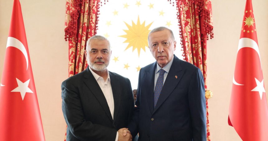 El presidente de Turquía, Recep Tayyip Erdogan, se ha reunido este sábado en Estambul con el jefe del buró político de Hamás, Ismail Haniye, asegurándole su apoyo para conseguir un alto el fuego en Gaza y finalmente un Estado palestino, informó la Presidencia turca en un comunicado.
