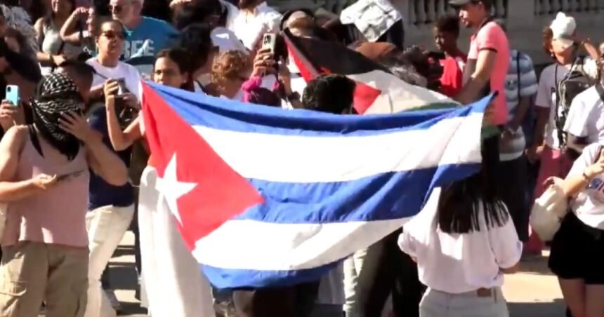 Cientos de jóvenes condenaron en la Universidad de La Habana los ataques de Israel contra la Franja de Gaza y se solidarizaron con las protestas pro-palestinas en Estados Unidos.