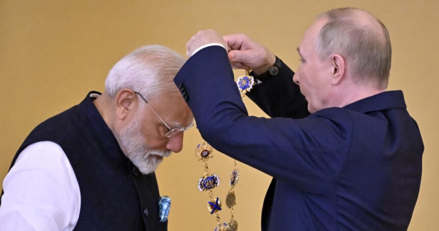 Putin condecora a Modi con la máxima distinción de Rusia tras pedir el fin de la guerra en Ucrania.