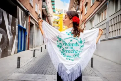Rita Maestre conmemora San Isidro con un mantón a favor del derecho a la vivienda, confeccionado por víctimas de violencia.